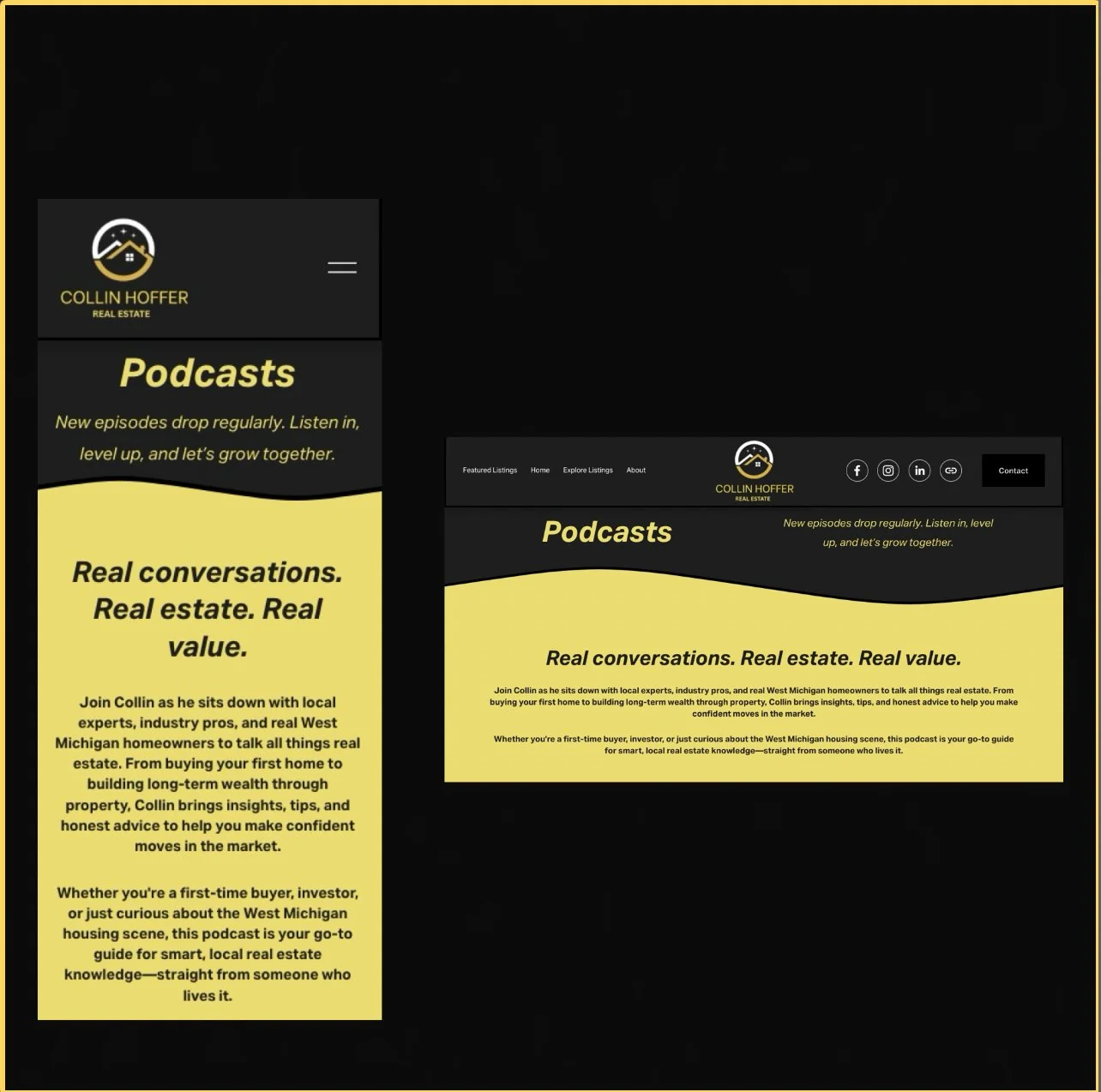 -And finally, we wrapped it all up with a featured listings page, an explore listings page, and a podcast page.